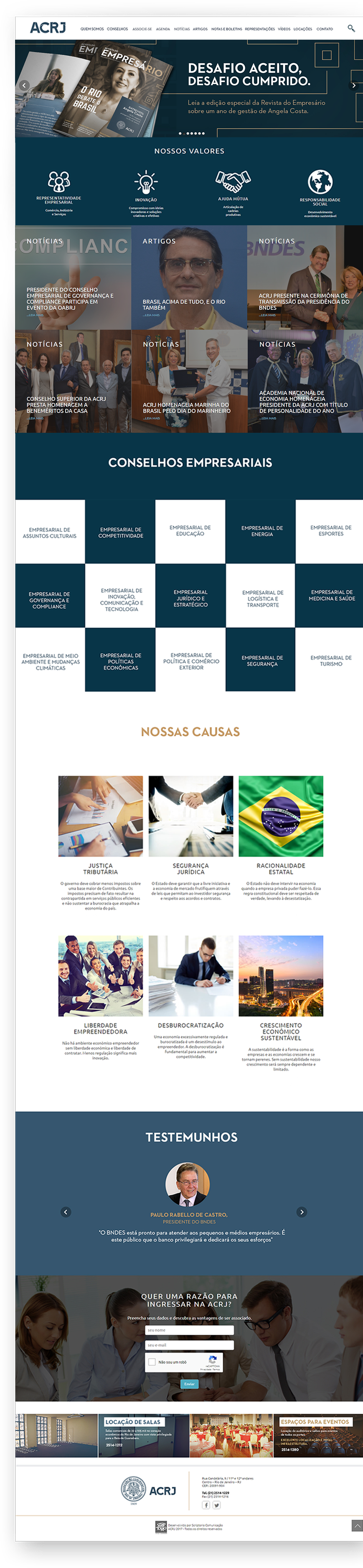 Uma nova gestão inovadora, comprometida com causas nacionais e a primeira liderança feminina da mais antiga entidade de representação civil do paÃs, com 209 anos de resistência. O marketing digital da ACRJ entrou em uma nova era: a começar pela total reformulaçtão do website e da comunicação com os associados.
