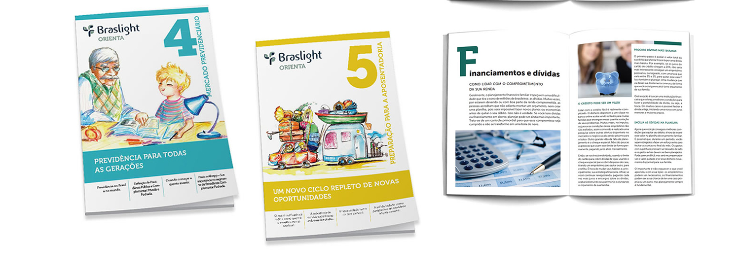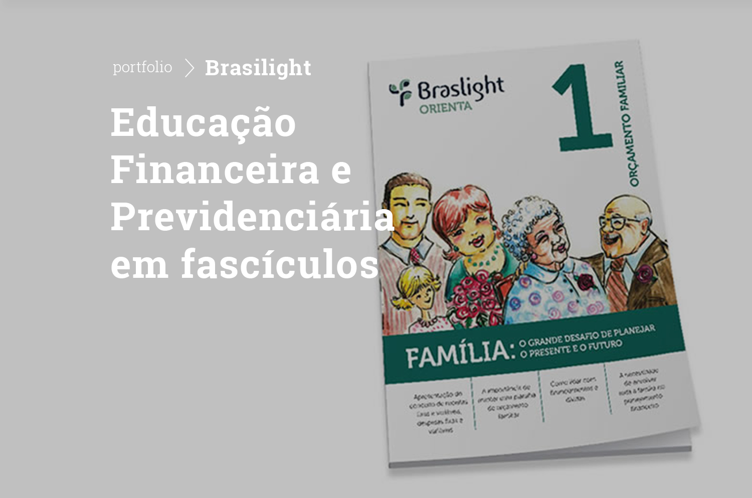 A Fundação de Seguridade Social Braslight inovou ao lançar edições seriadas em linguagem leve e didática com o objetivo de atingir toda a famÃlia dos colaboradores das Patrocinadoras. Abordando temas como planejamento financeiro, opções de investimento, previdência social e privada, e preparação para a aposentadoria, entre outros, o projeto cumpriu o papel de trazer para o debate temas relevantes que muitas vezes ficam restritos à s preocupações da liderança familiar.