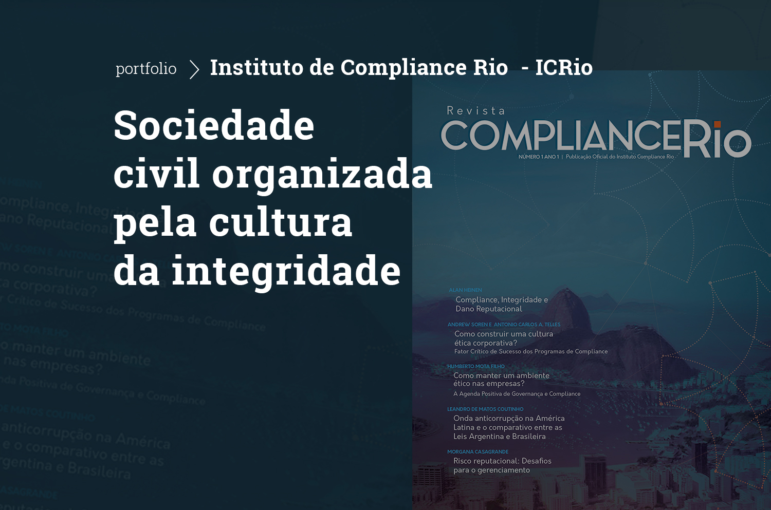 O Instituto Compliance Rio é uma associação civil sem fins lucrativos, independente e apartidária que reúne profissionais liberais, membros da academia, representantes de empresas públicas, privadas e do terceiro setor interessados em contribuir para a melhoria das práticas empresariais, do ambiente de negócios e do padrão ético nas relações público-privadas.