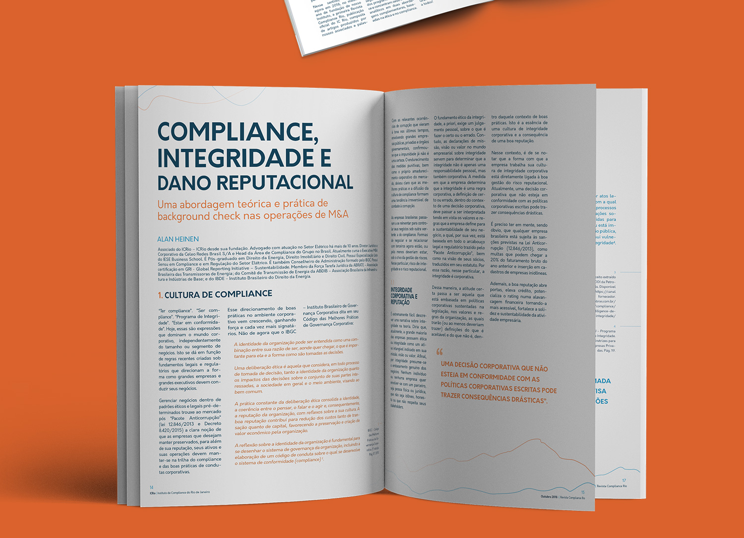 A Revista Compliance Rio traz artigos de especialistas sobre os principais conceitos que podem levar à criação de um ambiente de negócios Ãntegro e a transparência e confiança nas instituições e nas diversas esferas governamentais. Uma iniciativa da sociedade civil - de gente jovem, digna e capaz - em busca de garantir a democracia e o desenvolvimento sustentável do paÃs. Estamos juntos.