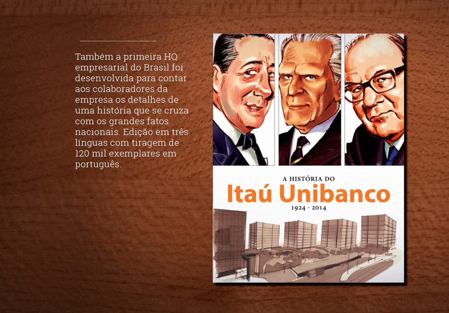 A história do Itaú Unibanco é também a história econômica e social do paÃs e a saga de três lideranças que contribuÃram para o desenvolvimento e consolidação do sistema financeiro nacional: Walter Moreira Salles, Eudoro Villela e Olavo Setubal.