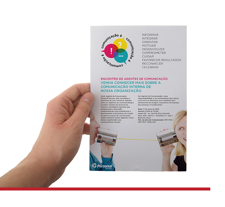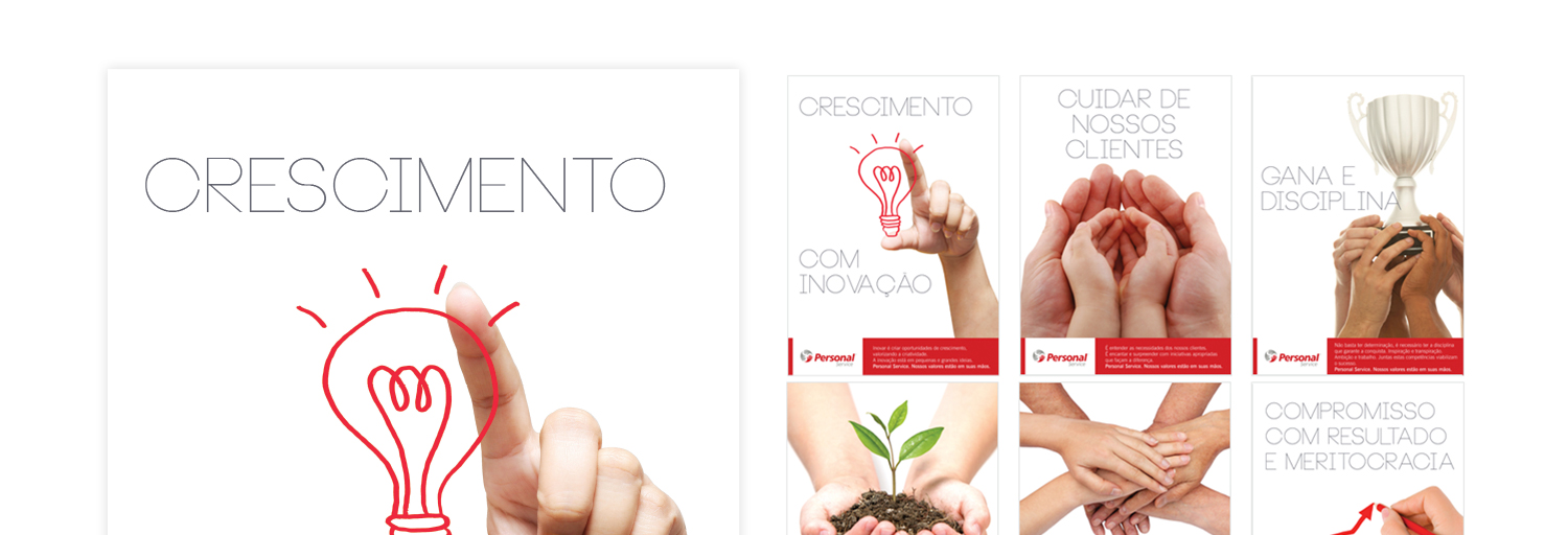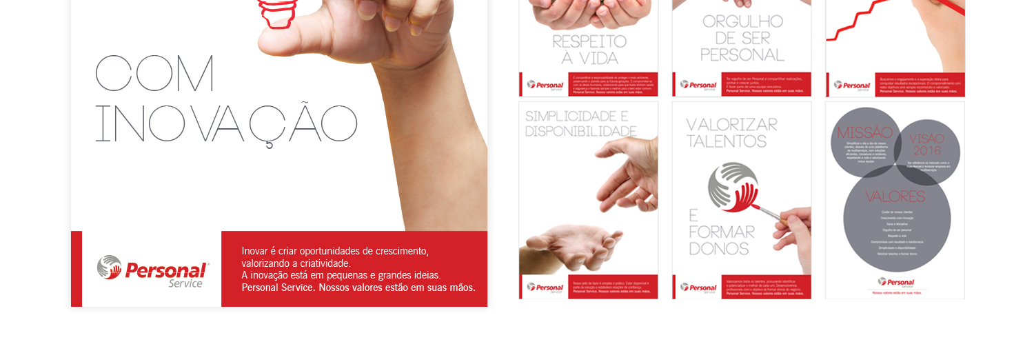 Criação da campanha para lançamento da Missão, da Visão e dos Valores da Personal Service, uma das principais empresas de Facilities do Brasil, com mais de 13 mil profissionais alocados nas principais corporações do PaÃs.